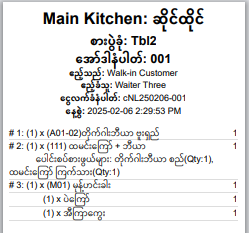 အရင်ဦးဆုံး ငွေတောင်းစာ၊ ငွေလက်ခံ ကိစ္စသည် ငွေကိုင်၏ ရာထူး လုပ်ပိုင်ခွင့် ဖြစ်သည်ကို နားလည်ထားပါ။ ဒါကြောင့် ငွေကြေးအပိုင်း ဝိတ်တာတွင် လုံးဝ တာဝန်မရှိပါဘူး။ ဝိတ်တာ ဘာတာဝန်ရှိလဲဆိုရင် မီးဖိုဆောင် အော်ဒါလွှတ်ခြင်းတာဝန် ဖြစ်ပါသည်။ ဒီအတွက် Kitchen Order Ticket များကို Abusive လုပ်လား စစ်ဆေးခြင်း အယူအဆကို ပြောပြပေးပါမယ်။